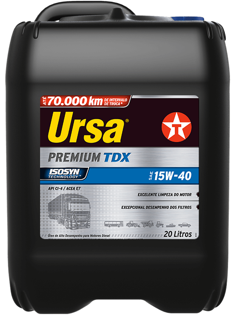 O Ursa Premium TDX 15W-40 é um óleo lubrificante mineral de alta performance desenvolvido pela Texaco para proteger e potencializar o desempenho de motores diesel de 4 tempos, sejam eles naturalmente aspirados ou turboalimentados. Ideal para caminhões, ônibus, tratores, máquinas agrícolas e equipamentos pesados que trabalham em condições severas de estrada, campo ou obra.